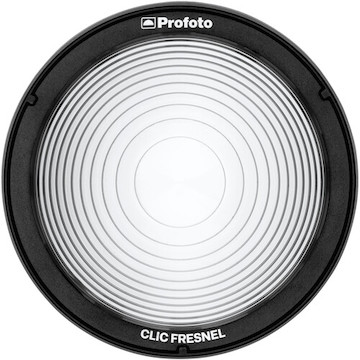 The Profoto Clic Fresnel is designed for Profoto A-Series flashes, adding 1.7 stops to the A2 and 1.2 stops to the A10. The concentrated lighting is ideal of selective lighting or throwing light across long distances. The Click Fresnel magnetically mounts to a flash and stacks with other Clic light-shaping tools for convenient storage.