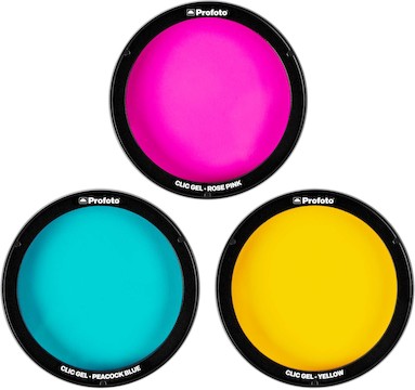 This Profoto Clic Grid with Creative Gels is a kit consisting of colorful and magnetic flash gels, a magnetic diffusion dome, and a set of snap-on grid modifiers. Key features include: