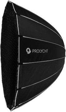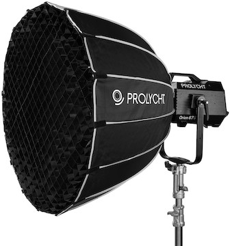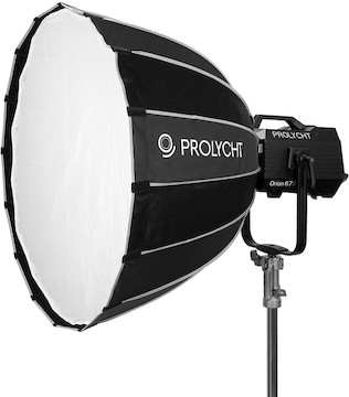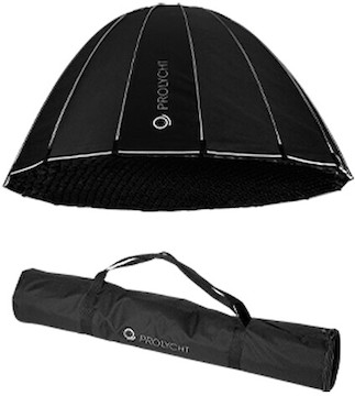 The Prolycht Soft Dome for Orion 675 FS LED (60") is a 60-inch 16-sided soft dome that provides soft, even illumination for your subject. Its depth provides directional control with sharp falloff, and two removable diffusers along with a cloth grid allow you to adjust the degree of softness and control light spill. It mounts easily to the Orion 675 FS light, the Orion 300 FS light, and other lights that utilize the Bowens S mount, without the need for a speed ring or bracket.