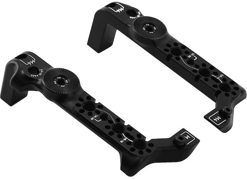 The RED DIGITAL CINEMA Side Ribs for V-RAPTOR is a pair of sturdy, aluminum brackets designed to attach to select RED accessories, rather than to the V-RAPTOR brain. Each rib is equipped with both 1/4"-20 and 3/8"-16 mounting threads, alongside one standard rosette per rib, creating the ultimate mounting setup for production sets. Please note that these side ribs require an attachment method outside of the camera, like the V-RAPTOR Quick Release Platform camera plate, V-RAPTOR Wing Grip, and RED V-RAPTOR Tactical Top Plate, available with a Battery Adapter Plus for V-Lock or Gold Mount.
