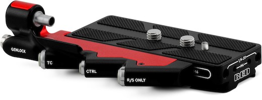The RED V-RAPTOR Expander Blade mounts to your RED V-RAPTOR 8K VV DSMC3 or ST 8K VV DSMC3 Cinema Camera and adds power, video, and communication ports to give you camera-configuration options for professional applications. It connects to the camera via the camera’s nine-pin EXT port and is supported by an included Arca-Swiss plate. Once attached, the Expander Blade provides a BNC connector (Genlock video), a five-pin connector for timecode, a four-pin connector for RED CTRL, and a three-pin Fischer for Run/Stop. Please note that the three-pin Run/Stop is only for triggering and doesn’t supply power.