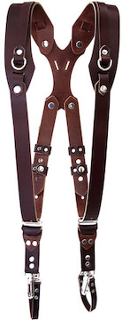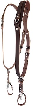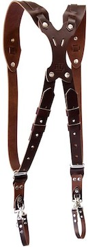 The RL Handcrafts Clydesdale Pro Large Brown Camera Harness is a handcrafted genuine leather harness designed to comfortably hold up to 3 DSLR cameras and keep your hands free. Key features include: