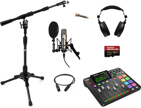The RODE RODECaster Pro II Podcast Studio Starter Kit is designed with podcasters in mind. This kit offers all of the items needed to provide a high-quality podcasting experience.