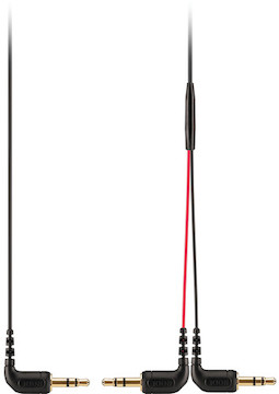 The Rode SC11 Right-Angle 3.5mm TRS Y-Splitter Cable is a 10.9" cable designed to connect two mono-output devices to a camera or camcorder. Key features include: