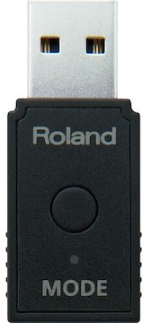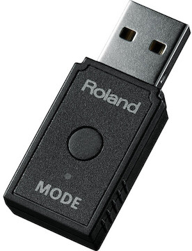 Dongle Talk. The Roland WM-1D Wireless MIDI Dongle is a USB adapter that allows use with Windows and Mac computers from up to 30 feet away. The WM-1D simply plugs into an available USB Type-A port on your computer and is used in conjunction with a WM-1 Wireless MIDI Adapter connected to the 5-pin DIN MIDI ports on your keyboard, controller, or drum machine. Standard mode allows you to connect up to 4 devices, but does heighten the latency range from 7.5 ms up to 15 ms, which may create timing issues. For a more responsive playing feel, the Fast mode lowers the latency to 3ms, but this limits you to connecting only two devices.