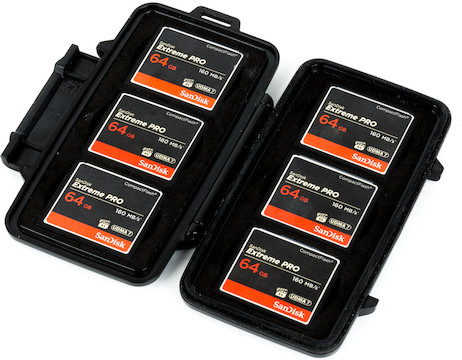 This is a six-pack of the SanDisk 64GB Extreme Pro 160MB/s CompactFlash, a high-speed, high-capacity memory card designed with video shooting in mind. Key features include: