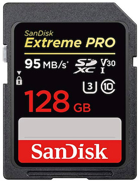 The SanDisk 128GB Extreme Pro 95MB/s UHS-1 U3 SDXC is a SD memory card that’s designed for capturing both still and video files. We also offer a 170MB/s version of this card. Key features include: