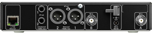 Fast, Easy, Dependable. The EM 2 receiver provides intuitive front panel controls along with two OLED screens perfect for displaying RF meters, transmitter battery levels, and audio output. The back panel features two balanced XLR outputs along with two unbalanced 1/4" outputs to connect directly to a PA system or mixing board. The EM 2 is a rackmount receiver, but hardware won’t be included with this rental.