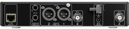 Receiver Talk. The dual channel receiver included with this setup allows you easily sync transmitters at a distance of up to 120 feet away and control the receiver remotely using the Smart Assist app on an iOS or Android device. This is an all metal, rack-mountable unit that offers an intuitive front panel and OLED display for making adjustments in a snap. The OLED displays meters for RF, battery status of the associated transmitter, and audio output that make setup a breeze. This receiver also includes balanced XLR outputs, unbalanced 1/4" outputs, a front headphone jack with volume control, and an external power supply unit if you decide to not use the PoE port. Each receiver supports up to two transmitters and two channels of audio.