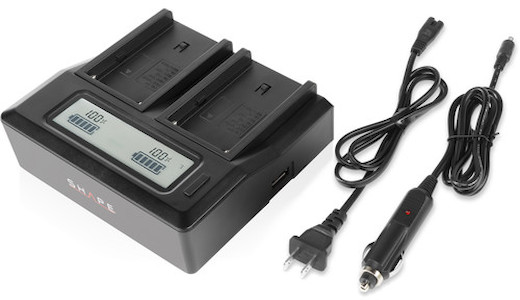 Juice up your NP-F980 batteries with the NP-F Dual-Bay Charger with LCD from SHAPE.