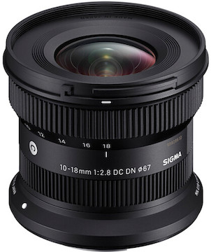 Versatile Ultra-Wide Zoom. The Sigma 10-18mm f/2.8 DC DN Contemporary’s ultra-wide 15-27mm equivalent zoom range and compact build make it great for travel photography, family photography, and vlogging, while its fast constant f/2.8 maximum aperture and rounded seven-blade diaphragm produce round, pleasing bokeh and enable excellent performance in low light.