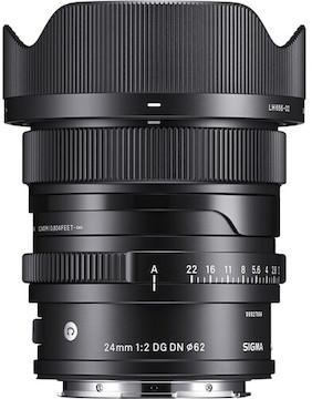 Versatile Wide-Angle Prime. The Sigma 24mm f/2 DG DN Contemporary’s compact build and versatile focal length make it ideal for a broad range of shooting situations, including landscape, nature, interior, and architectural photography. The bright f/2 aperture lets you shoot in low light while offering excellent focus control when using shallow depth-of-field techniques, while the rounded nine-blade diaphragm lets you render smooth bokeh. Using an APS-C camera? You’ll get a focal length equivalent to 36mm.