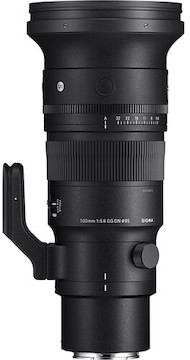 Versatile Ultra-Telephoto Prime. The Sigma 500mm f/5.6 DG DN OS Sports for Sony E provides a broad focal range that’s perfect for sports, wildlife, action, and aviation photography, in addition to any other situation in which you want to capture fast-moving subjects. The f/5.6 aperture isn’t great in low light, so you’ll probably want to stick to outdoor lighting conditions. Using an APS-C camera? You’ll get a focal length equivalent to 750mm.