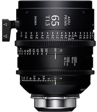 Cinematic Elegance. At first glance, the Sigma Aizu Cine 65mm T1.3 LF Prime (Sony E) is presented like many other cine lenses of its kind, with a refined, classic design. Each focal length of this series, including the 25mm, 27mm, 32mm, 35mm, 40mm, 50mm, and 75mm Sony E-mount lenses, produce a consistent look across the board with minimal breathing and distortion, and balanced color, contrast, and flare characteristics.
