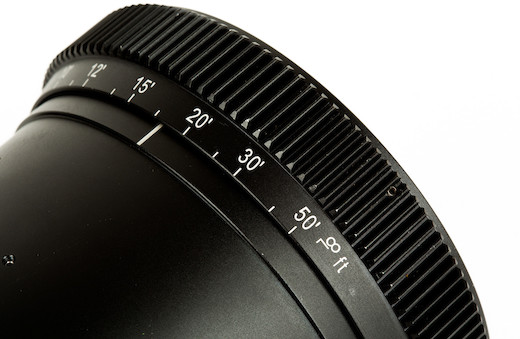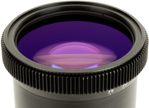 Since the focus ring is at the extreme front of the barrel, you can’t use a clamp-on matte box with this lens. To make matters worse, the barrel physically extends when focusing, so a rod-mounted matte box won’t work either. Basically, using a matte box with this lens would require a very creative setup that we can’t really recommend.