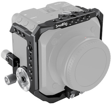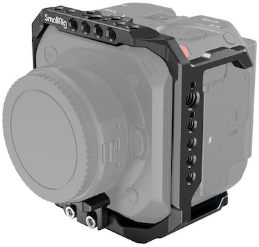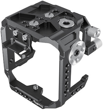 The cage is also compatible with the the Panasonic Lumix BS1H Full-Frame Cinema Camera, but the lens adapter support will not be compatible with this camera.