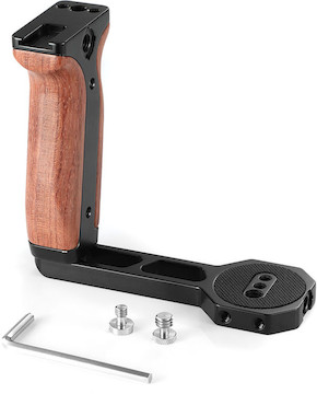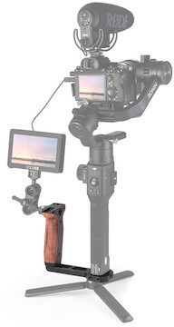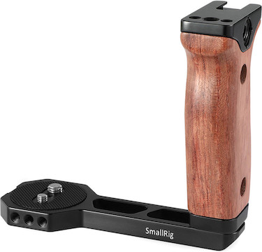 The SmallRig Universal Wooden Side Handle for DJI Ronin-S is an extra handle for your DJI Ronin-S, DJI Ronin-SC, or Zhiyun Crane-2 gimbal. It connects to the bottom of your gimbal or camera with a mounting screw, and it’s padded to protect and secure your gear. The handle’s aluminum portion boasts multiple 1/4"-20 and 3/8"-16 mounting threads, ARRI-style accessory mounts, and a shoe mount on the top of the handle so add a light, mic, monitor, mounting arms, or other accessory. The bottom of the handle base includes 1/4"-20 and 3/8"-16 mounting threads so you can add a quick-release tripod plate.