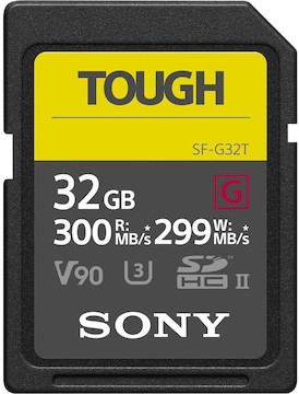The Sony 32GB SF-G Tough Series UHS-II SDHC Memory Card is a heavy-duty memory card capable of a 299 MB/s max write speed and 300 MB/s max read speed. Key features include: