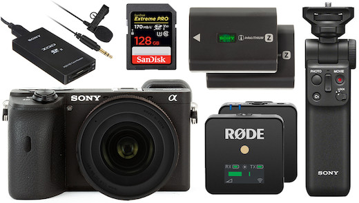 The Sony Alpha a6600 Mobile Vlog Kit is a video-centric all-in-one mirrorless camera package that works perfectly for making short video clips on the go at up to UHD 4K. The high quality video, included wide-angle lens, grip/tripod, and wireless lav mic allow for great video with great audio from a one-handed camera rig with the option of renting additional lenses. Set up is simple and fast with SD media included to get you going right out of the case. If you’d like anymore information about the kit components, click the links below.