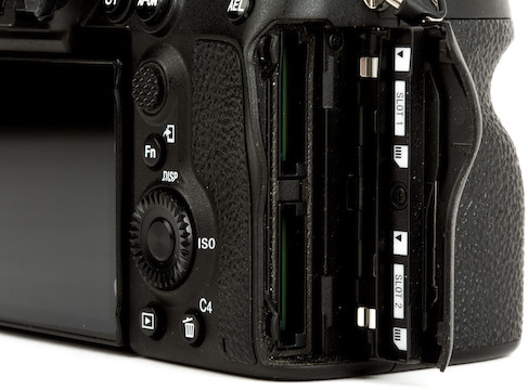 Other Notable Features. This camera’s durable, high-quality magnesium-alloy build includes extensive weather sealing and an all-metal lens mount that’s been redesigned to better support heavier lenses. Built-in Wi-Fi gives you remote camera control, image sharing, and wireless tethered shooting. Both of the dual memory-card slots accept CFexpress Type A or SD-type memory cards for file-handling flexibility. Both card slots support UHS-II memory cards. The a7S III is powered by the high-capacity NP-FZ100 battery, which gives you roughly 510 shots/80 minutes of video recording per charge when using the EVF or 600 shots/95 minutes of video recording per charge when using the rear LCD.