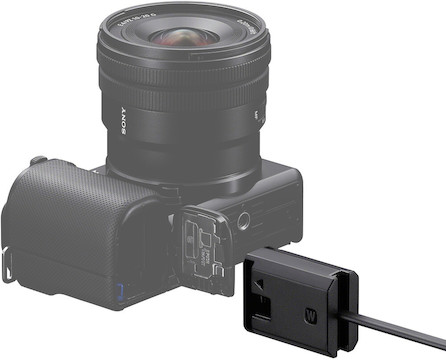 The Sony DC-C1 DC Coupler is a “dummy battery” that replaces either an NP-FW50 or an NP-FZ100 battery inside your camera and connects to an AC outlet for continuous wall power – a great feature for long indoor shoots. This rental is just for the coupler. A USB PD AC wall adapter and USB-C cable are not included. The coupler is attached to a 5.2’ cable, allowing you some movement even while tethered to an outlet.