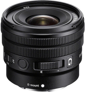 Versatile Ultra-Wide Zoom. The Sony E 10-20mm f/4 PZ G’s versatile, 15-30mm equivalent focal-length range is wide enough for handheld selfie-style vlogging and content creation but narrow enough to make a great everyday lens. The constant f/4 aperture isn’t quite fast enough for low-light shooting, but it’s better than a variable-aperture zoom and helps to keep this lens compact and lightweight.