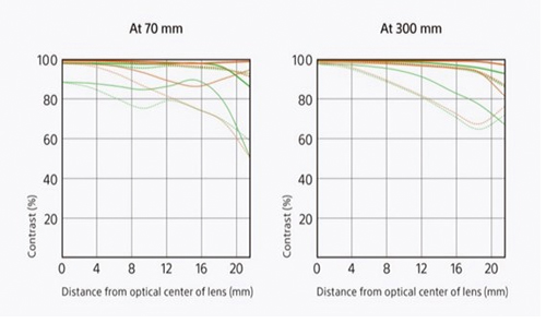 Advanced Optics. The FE 70-300mm uses two extra-low dispersion elements and four aspherical elements to minimize chromatic aberrations and distortion throughout the zoom range, and for producing clear, high-contrast images. The rounded nine-blade aperture diaphragm produces smooth out-of-focus highlights, and the Nano AR coatings keep flare and ghosting at bay.