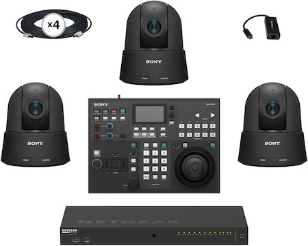 The Sony SRG-A40 PTZ 3-Camera Network Ready Kit w/ Remote includes: