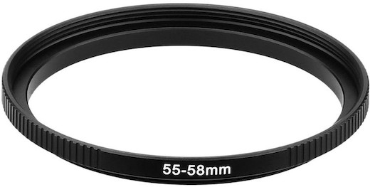 The Step Up Ring 55mm-58mm is a corrosion-resistant, aluminum alloy adapter designed to secure 58mm filters on lenses with 55mm filter threading. If you are using a rotating filter with this adapter, please take a look through the Rotating Filter Notes!