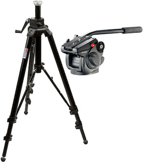 This is a medium duty video tripod system combining a Manfrotto 501HDV fluid head with the Bogen 475B Professional aluminum tripod legs with center support and flat head mount. This combination can support up to 13 pounds, weighs 9 pounds, and can extend up to 74 inches with the center column maximally extended (our tallest tripod). We suggest using this tripod with smaller, to mid-sized camcorders, as well as lighter DSLR rigs (camera, lens, rail support, follow focus). This tripod is also good for use with our light weight sliders (our recommendations are listed under the “works well with” tab).