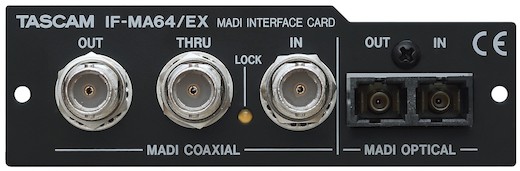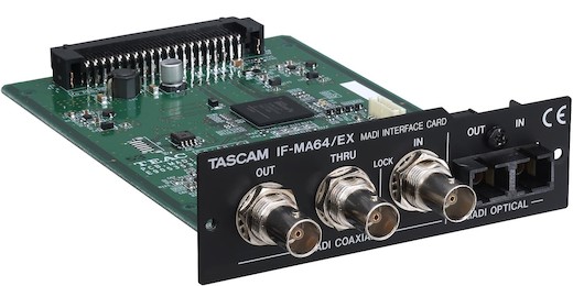 The TASCAM IF-MA64/EX 64-Channel MADI Interface Card is an add-on interface designed to bridge compatibility between select TASCAM recorders and mixers, like the Sonicview 16XP, and select Blackmagic MADI switchers and converters. This interface card allows users to send and receive uncompressed digital audio signals to up to 64 channels. It slides into the expansion slot of the recorder and secures to the chassis with the provided screws and dual-sided screwdriver.