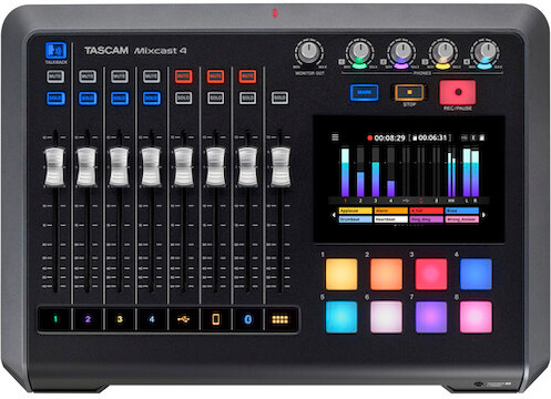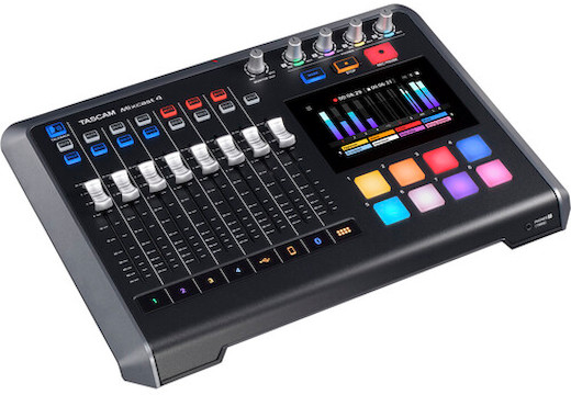 The TASCAM Mixcast 4 Podcast Workstation is a mixer, recorder, and USB audio interface designed for 4-person podcast recording. Key features include: