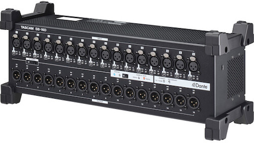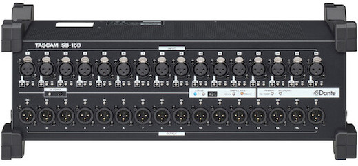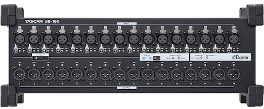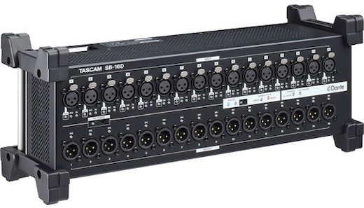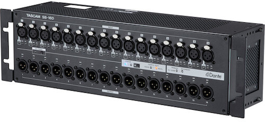 Superlative Audio I/O for Dante Networks. The TASCAM SB-16D 16×16 Dante Stage Box and Audio Interface offers the same audio performance and build quality that you expect from Sonicview mixer-recorders. It’s a Dante-networked 16-in / 16-out stage box that seamlessly integrates with Sonicview-series units but can also be used as a stand-alone interface. You can rack-mount the SB-16D or use it as a floor stage box, and you can use multiple SB-16D units in a single Dante network.