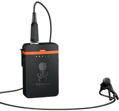 The Tentacle Sync Track E Timecode Audio Recorder w/ Lav Mic is a pocket-sized lav mic and recorder system with Bluetooth control compatibility and LTC timecode support. Key features include: