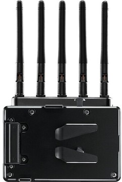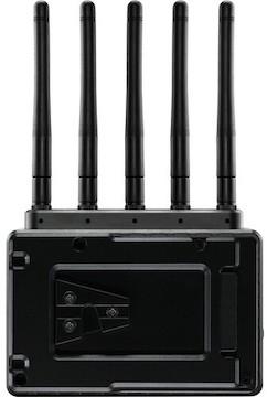 The Teradek Bolt 6 LT HDMI Wireless Receiver (VMount) accepts UHD, 10-bit HDR footage from up to 750 feet and supports the 6 GHz wireless band when used with other Bolt 6 devices, and includes a V-Mount battery plate. Key features include: