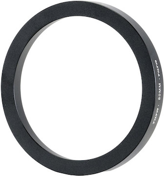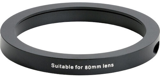 This adapter ring’s tongue and groove design uses a single M3 tie down screw to secure to an 80mm lens front.