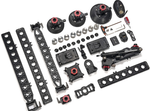 The Tilta Hydra Alien Car Mounting System (Gold Mount) is a multi-configuration car mount for cameras and camera/gimbal combos up to ~13 pounds. Key features include: