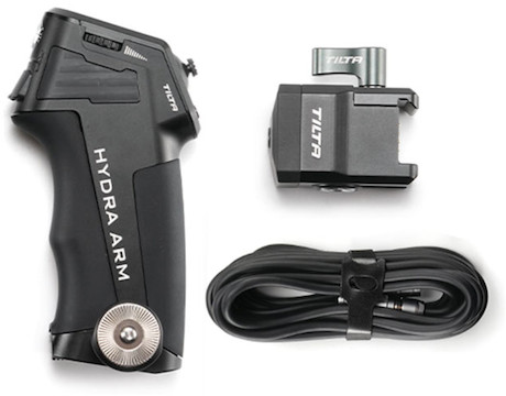 The Tilta Hydra Handle Wired Control Kit for DJI RS Gimbals can use a wireless or wired connection to control the settings of a small variety of RS gimbals, including the DJI RS 4 Pro. A small but powerful joystick allows you to control the pan and tilt of your gimbal, while a camera control button and mode button gives you power over the connected camera’s settings and functions.