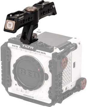 The Tilta Rotatable Quick Release Top Handle was designed specifically for the Tilta Full Camera Cage for RED KOMODO. The handle rotates 90° with the push of a button to let you quickly select the orientation you prefer, and it uses a locking thumbscrew to easily attach to and detach from your camera or cage’s cold-shoe mount. This aluminum and stainless steel handle has two shoe mounts with spring-loaded safety releases, and a number of 1/4"-20 anti-twist mounts to accommodate your accessories.