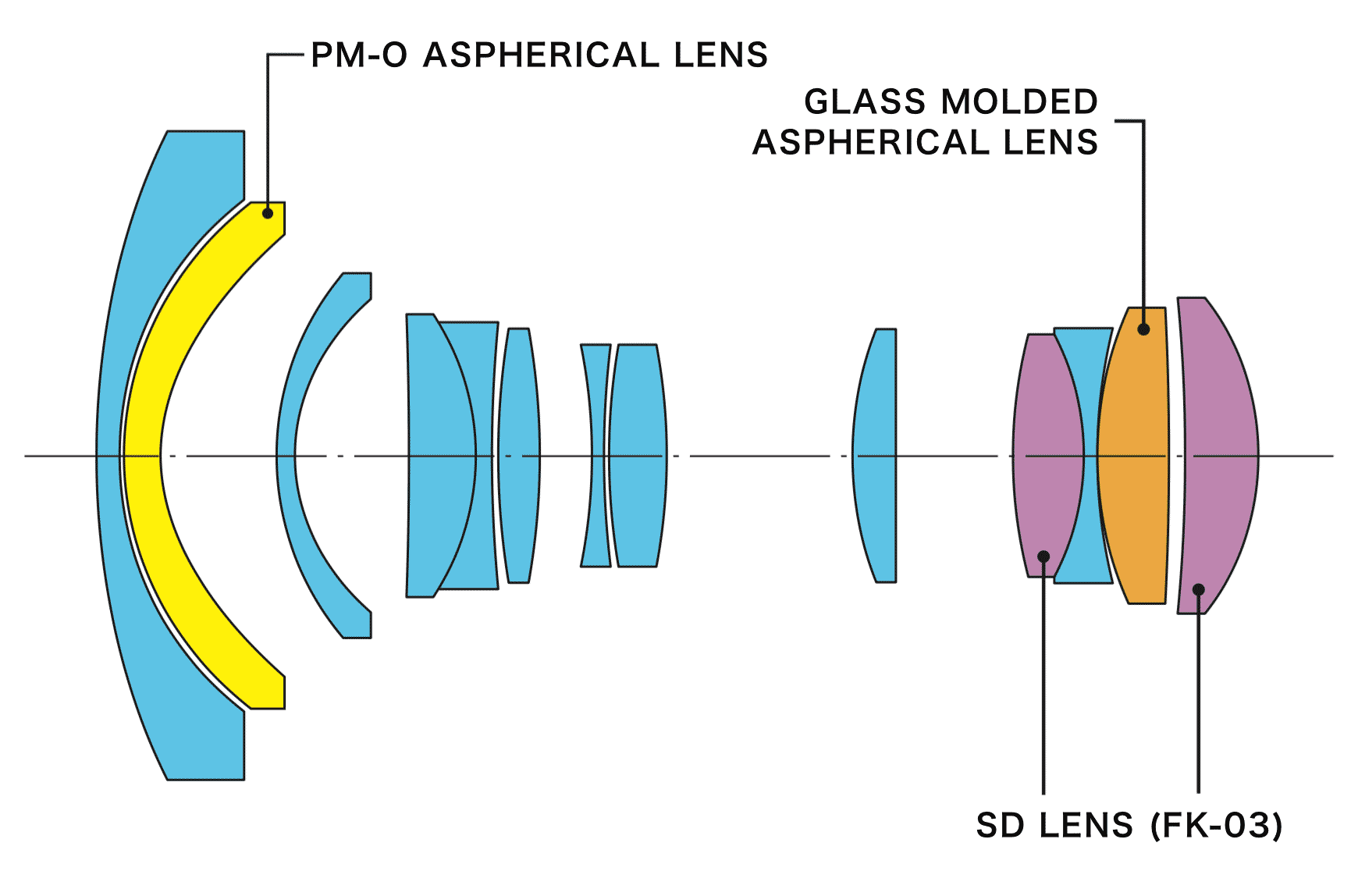 High-Quality Optics. The 11-16mm f/2.8 CF’s eleven-group/thirteen-element optical formula uses two SD low-dispersion elements and two aspherical elements to produce extremely sharp, high-contrast, and color-accurate images while combating fringing, aberrations, and distortions.