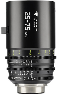 Versatile Cine Zoom. The Tokina Cinema 25-75mm T2.9 boasts a highly versatile zoom range in a compact build. Its 2.4-foot minimum focusing distance lets you get tight close-ups, even while you’re at a comfortable distance from your subject.