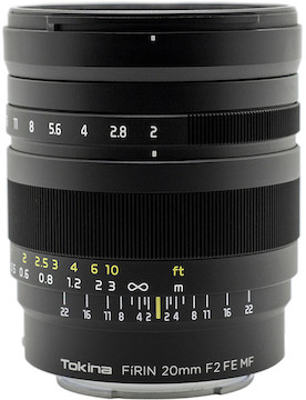 Ultra-Wide Prime. The Tokina FiRIN 20mm f/2 FE MF’s ultra-wide angle perspective makes it excellent for landscapes, cityscapes, and multimedia photography. Its fast f/2.0 maximum aperture is great for working in low light and other difficult lighting conditions, while its nine-blade diaphragm helps produce pleasing out-of-focus highlights. You can also use this lens on APS-C cameras, on which it’ll provide a 30mm equivalent focal length.