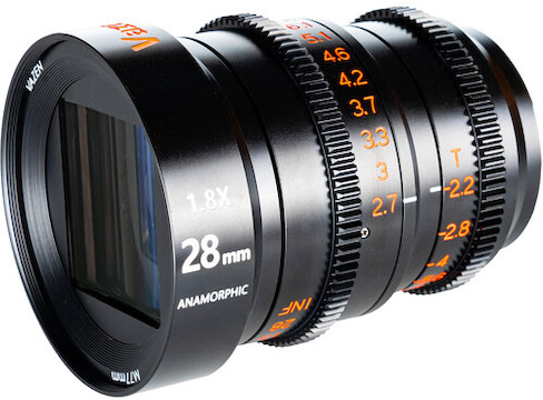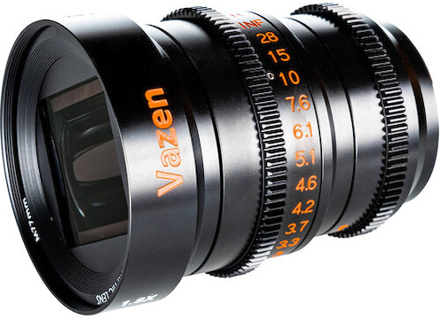 The Vazen 28mm T2.2 1.8x Anamorphic is a relatively portable Canon RF-mount lens that adds enhanced anamorphic flares and a distinctive cinematic look to your shots. Key features include: