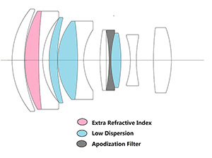 Optics. The Laowa 105mm features eleven elements in eight groups, including three low dispersion elements and one high refractive element. This optical design keeps chromatic aberrations under control and delivers sharp images with lots of clarity.