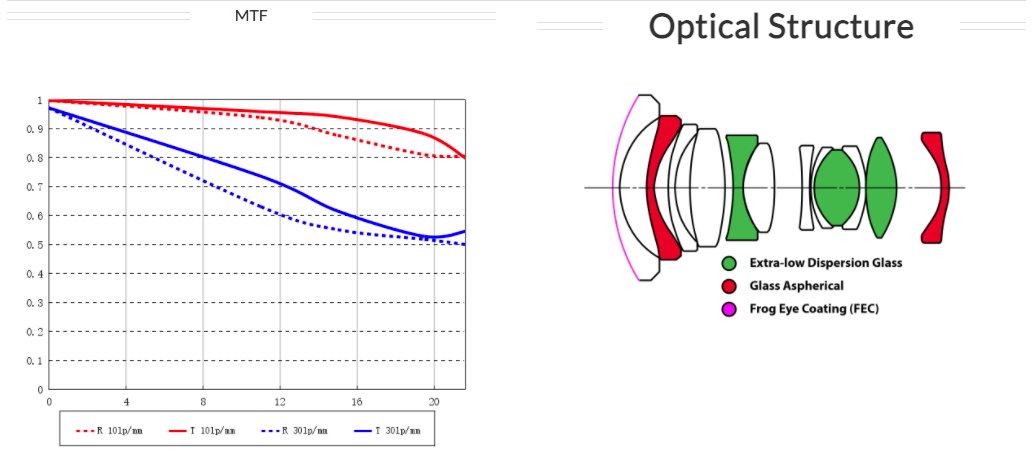 110° angle of view, 6-inch close focus, 0.8 mod cine gears