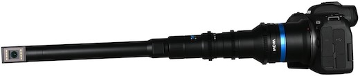 The Venus Optics Laowa 24mm T14 2x PeriProbe for Canon RF is a long, slender lens designed for macro shooting on Canon RF-mount cameras. It includes interchangeable 0° direct-view and 90° periscope modules. Key features include:
