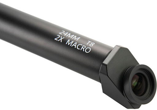 Wide-Angle Macro Prime. The 24mm Pro2be’s 2x magnification ratio and a 0.2-inch minimum focusing distance let you shoot extreme close-ups with total clarity. Its wide-angle focal length provides greater depth of field than standard telephoto macros for less subject isolation and more background detail, and its reasonably fast T8 maximum aperture lets you work in low light.