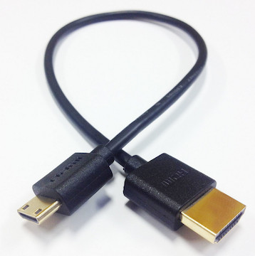 The HDMI Male (type A) to Mini-HDMI (type C) 18" Ultra-Thin is a higher quality cable that’s ideal for somewhat short runs where excess cable isn’t an option. It works great for connecting external monitors to compatible video-enabled DSLRs and camcorders.