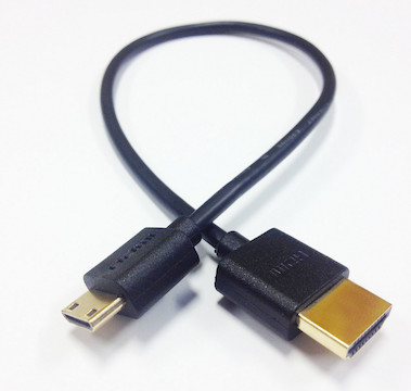 The HDMI Male (type A) to Mini-HDMI (type C) 1ft. Ultra-Thin is a higher quality cable that’s ideal for very short runs where excess cable isn’t an option. It works great for connecting external monitors to compatible video-enabled DSLRs and camcorders.