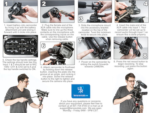 The LensRentals Advanced Monopod Kit provides a stable shooting base, but also allows you ease of mobility so you can quickly change shooting positions. The supplied fluid head monopod offers a slim form factor which makes it well-suited for shooting in confined spaces. The included shotgun microphone is designed to only pick up the audio in front of it, which will minimize the recording of distracting ambient noise and chatty parents standing around the camcorder.